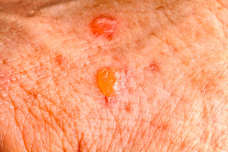 Monkeypox has a wide incubation period ranging from five days to three weeks. Patients typically present with fever, chills, fatigue, headache, muscle aches, sore throat, lymphadenopathy, and skin lesions. The skin lesions evolve from macules and papules to vesicles and pustules that ulcerate and crust before healing over several weeks. The skin lesions usually occur in crops. The initial lesions are usually at the site of inoculation, which may explain why in the current outbreak, lesions have been located on or near the genitalia or anus. Most often, monkeypox infection is self-limited, usually lasting two to four weeks.